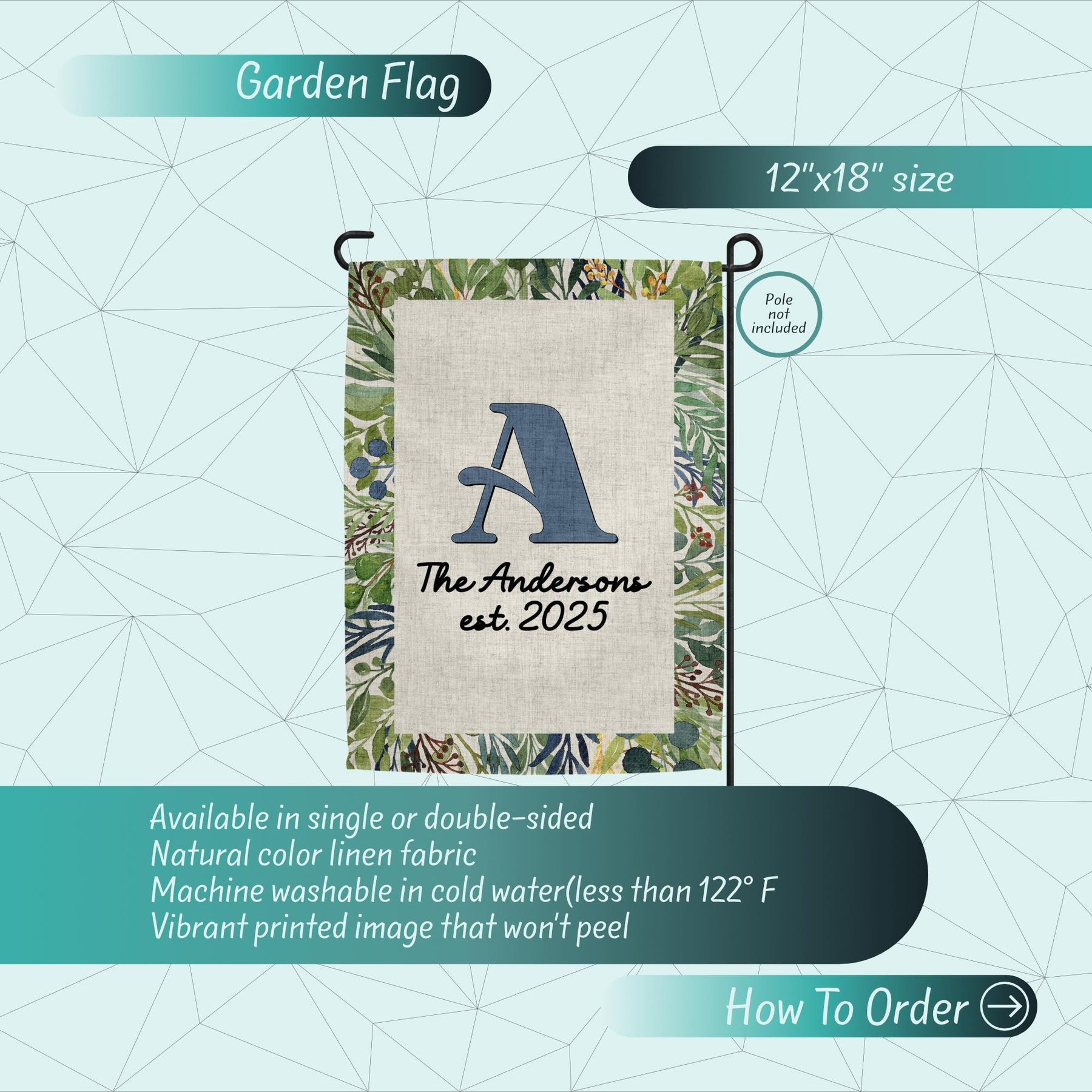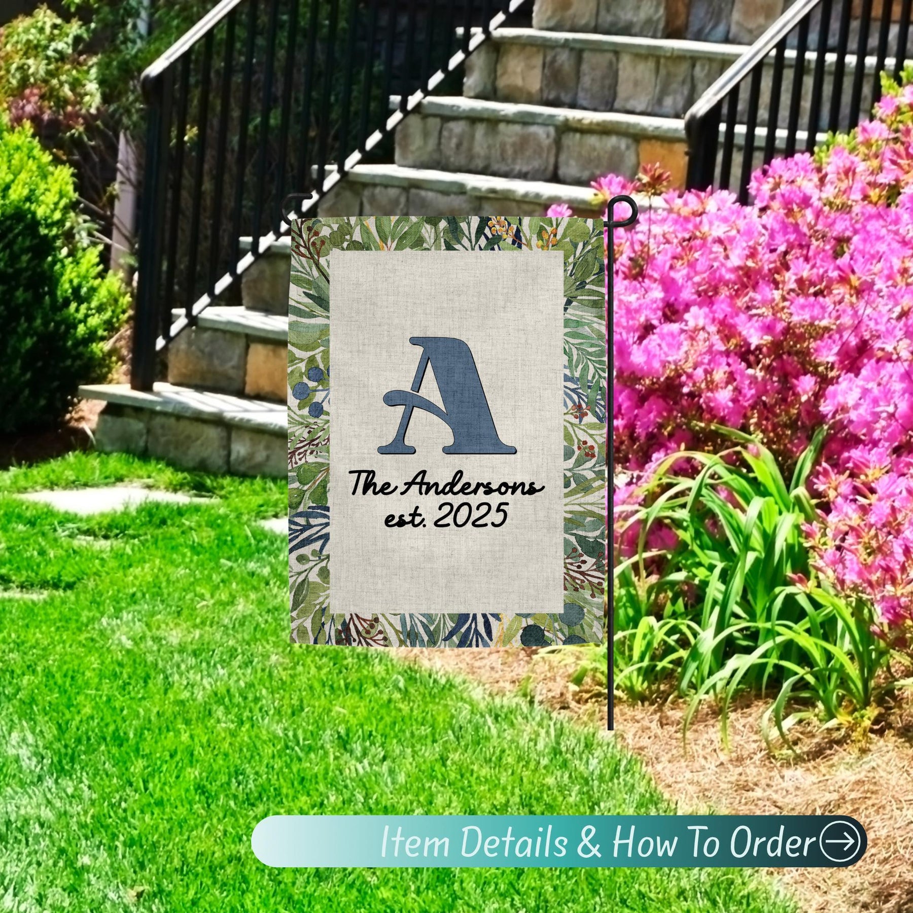 Welcome guests in style with this Custom Garden Flag featuring your Family Name Sign! Perfect for Easter Decor, Summer Style, or everyday Porch Decor, this Last Name Sign adds charm to your Yard Art and Garden Decoration. A lovely Gardening Gift or thoughtful housewarming idea, this Welcome Sign pairs beautifully with a Door Wreath for a complete look. Whether you're updating your Yard Decor or gifting a Custom Flag to someone special, this personalized flag brings warmth and personality to any outdoor space.
