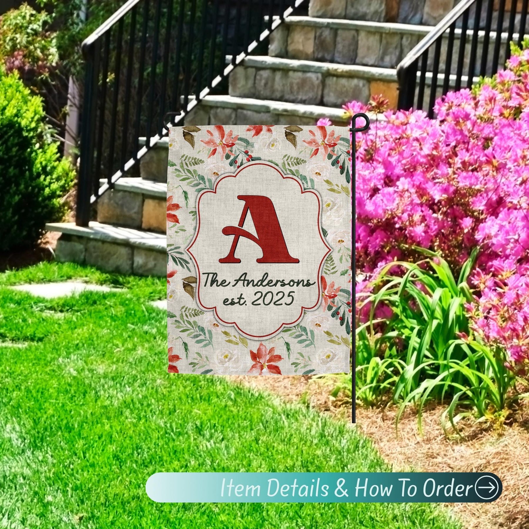 Welcome guests in style with this Custom Garden Flag featuring your Family Name Sign! Perfect for Easter Decor, Summer Style, or everyday Porch Decor, this Last Name Sign adds charm to your Yard Art and Garden Decoration. A lovely Gardening Gift or thoughtful housewarming idea, this Welcome Sign pairs beautifully with a Door Wreath for a complete look. Whether you're updating your Yard Decor or gifting a Custom Flag to someone special, this personalized flag brings warmth and personality to any outdoor space.