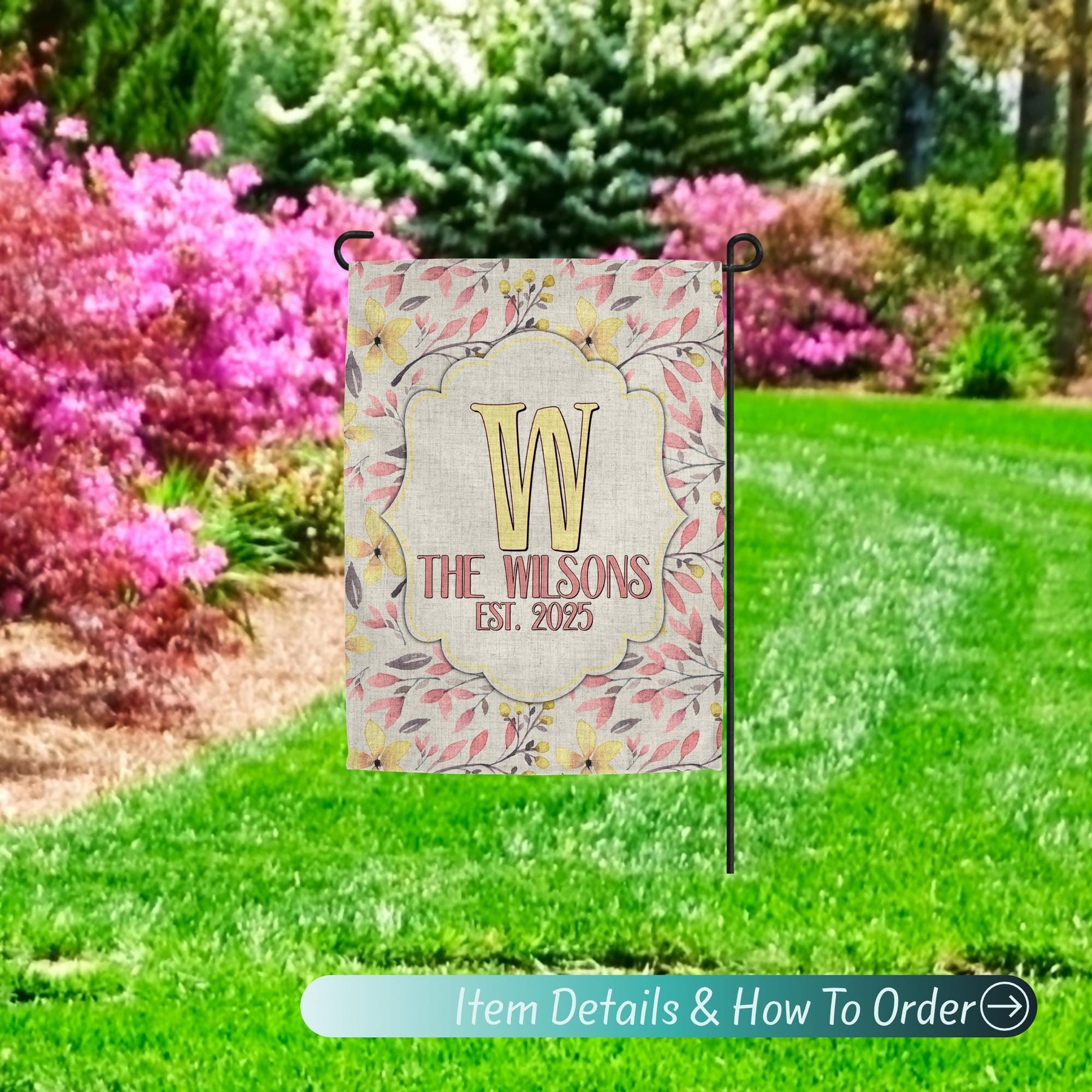 Welcome guests in style with this Custom Garden Flag featuring your Family Name Sign! Perfect for Easter Decor, Summer Style, or everyday Porch Decor, this Last Name Sign adds charm to your Yard Art and Garden Decoration. A lovely Gardening Gift or thoughtful housewarming idea, this Welcome Sign pairs beautifully with a Door Wreath for a complete look. Whether you're updating your Yard Decor or gifting a Custom Flag to someone special, this personalized flag brings warmth and personality to any outdoor space.