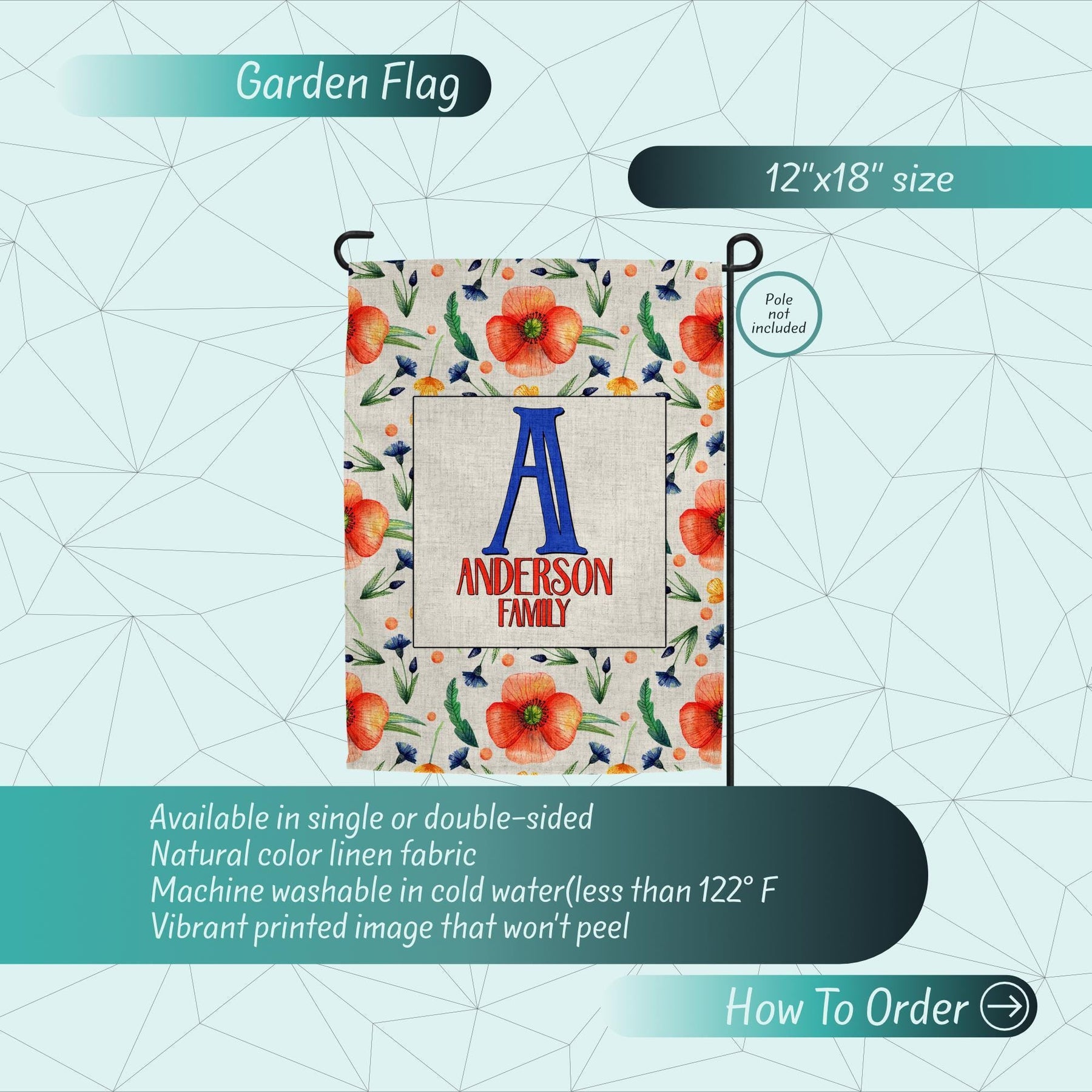 Welcome guests in style with this Custom Garden Flag featuring your Family Name Sign! Perfect for Easter Decor, Summer Style, or everyday Porch Decor, this Last Name Sign adds charm to your Yard Art and Garden Decoration. A lovely Gardening Gift or thoughtful housewarming idea, this Welcome Sign pairs beautifully with a Door Wreath for a complete look. Whether you're updating your Yard Decor or gifting a Custom Flag to someone special, this personalized flag brings warmth and personality to any outdoor space.