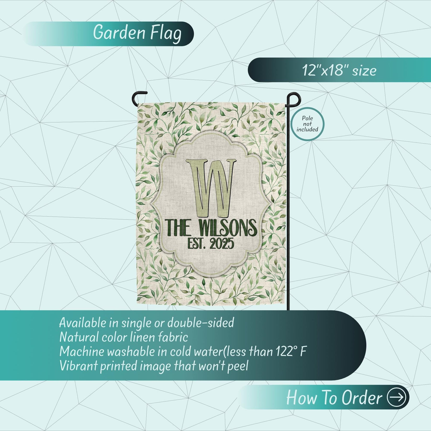 Welcome guests in style with this Custom Garden Flag featuring your Family Name Sign! Perfect for Easter Decor, Summer Style, or everyday Porch Decor, this Last Name Sign adds charm to your Yard Art and Garden Decoration. A lovely Gardening Gift or thoughtful housewarming idea, this Welcome Sign pairs beautifully with a Door Wreath for a complete look. Whether you're updating your Yard Decor or gifting a Custom Flag to someone special, this personalized flag brings warmth and personality to any outdoor space.