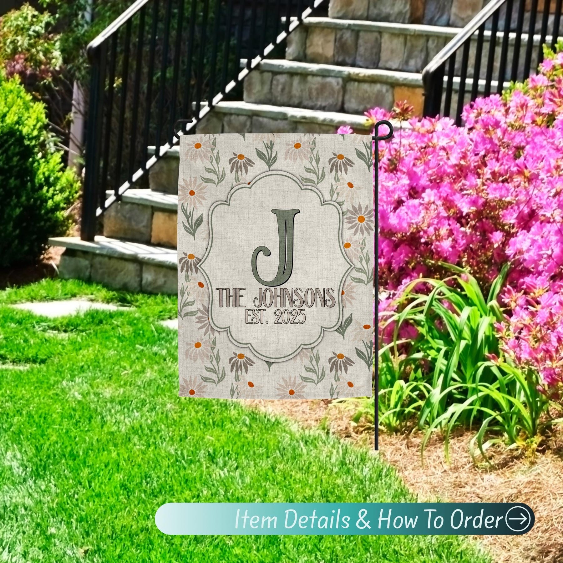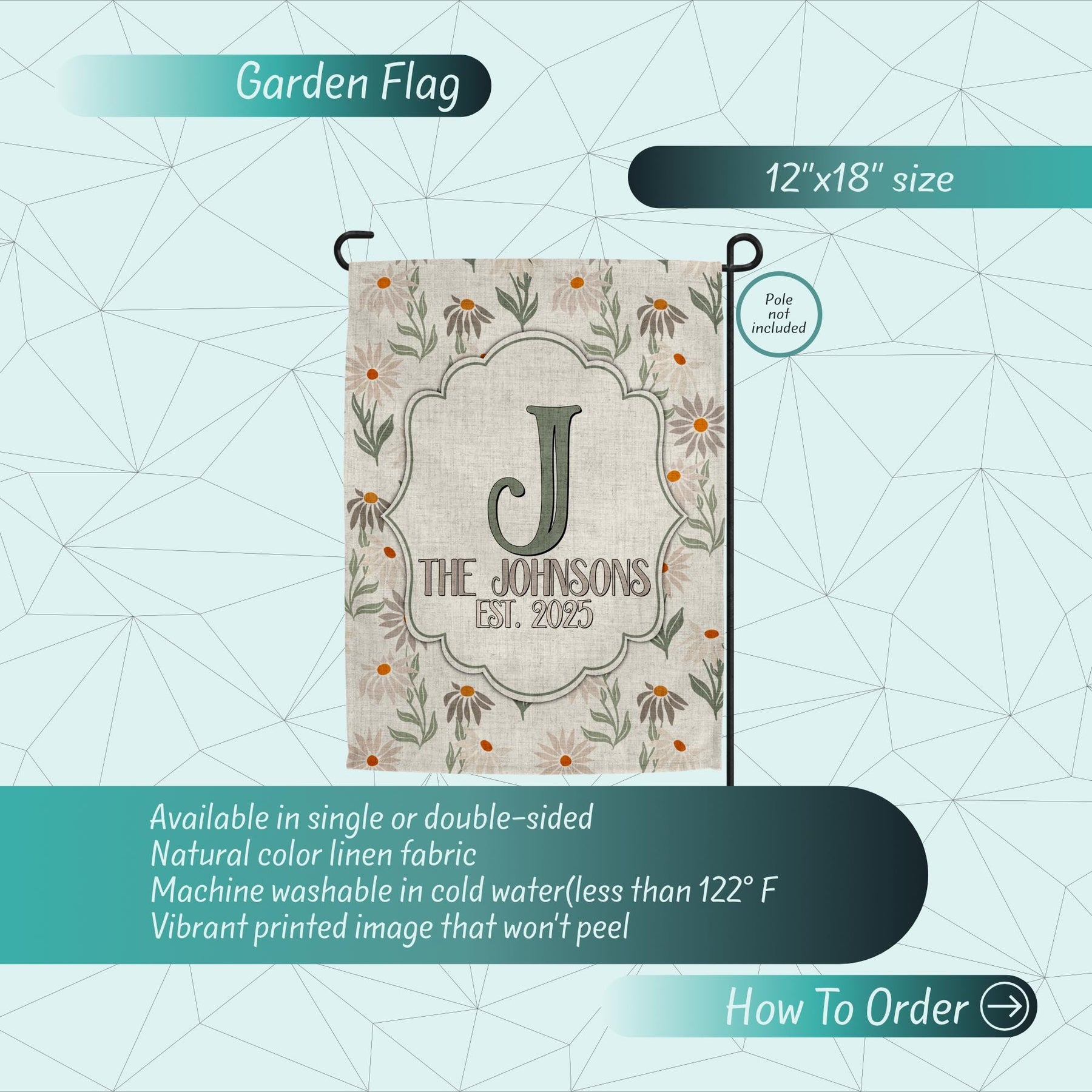 Welcome guests in style with this Custom Garden Flag featuring your Family Name Sign! Perfect for Easter Decor, Summer Style, or everyday Porch Decor, this Last Name Sign adds charm to your Yard Art and Garden Decoration. A lovely Gardening Gift or thoughtful housewarming idea, this Welcome Sign pairs beautifully with a Door Wreath for a complete look. Whether you're updating your Yard Decor or gifting a Custom Flag to someone special, this personalized flag brings warmth and personality to any outdoor space.