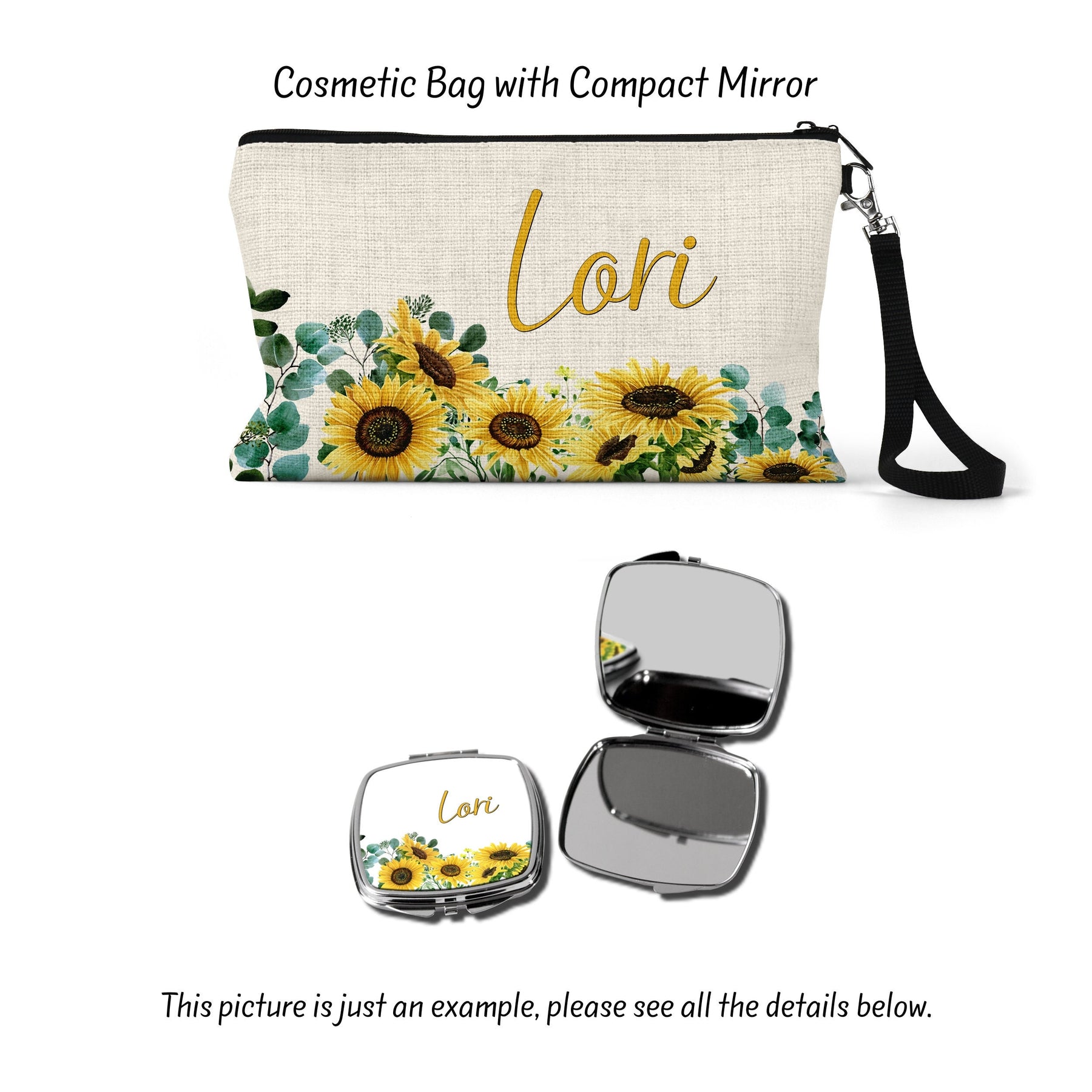 Discover the perfect gift with our Sunflower Cosmetic Bag, an ideal choice for bridesmaid proposals, girlfriend surprises, or showing appreciation to your best friend. This beautifully designed makeup bag, adorned with vibrant sunflowers, doubles as a charming travel bag. Personalize it to create a unique, custom makeup bag that celebrates friendship, love, and special wedding moments. Whether it's for your flower girl, as a bridesmaid gift, or a special token for someone dear, this sunflower bag is a thoughtful and practical present that will bring joy and organization to their daily routine.