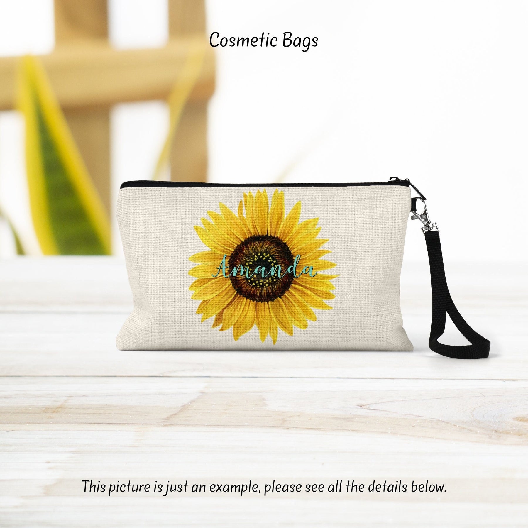 Discover the perfect gift for your bridesmaids, girlfriend, or best friend with our Custom Sunflower Makeup Bag! Ideal for wedding preparations or a thoughtful bridesmaid proposal, this charming cosmetic bag features a vibrant sunflower design. It's not just a makeup bag; it's a versatile travel companion for all your beauty essentials. Customize it for a unique flower girl gift or as a special reminder of your special day. Make your loved ones feel extraordinary with this exquisite sunflower gift, designed to bring joy and organization to every journey.