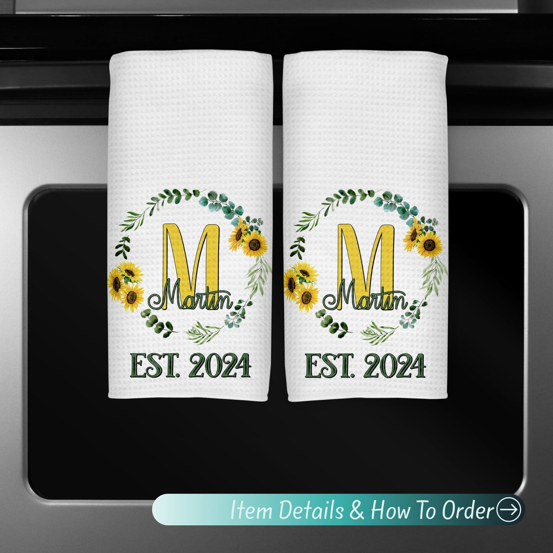 Brighten your kitchen with our Custom Tea Towel, featuring a vibrant sunflower summer wreath design. This personalized towel is not just a dish towel; it's a cheerful addition to your home décor. Ideal as a hand towel or kitchen towel, it's a versatile piece that brings warmth and joy into any space. Crafted with love, it makes a thoughtful hostess gift, housewarming gift, or a sweet gesture for Mother's Day. Let this custom towel bring a touch of sunshine and happiness to your daily routine, making every day a little brighter.